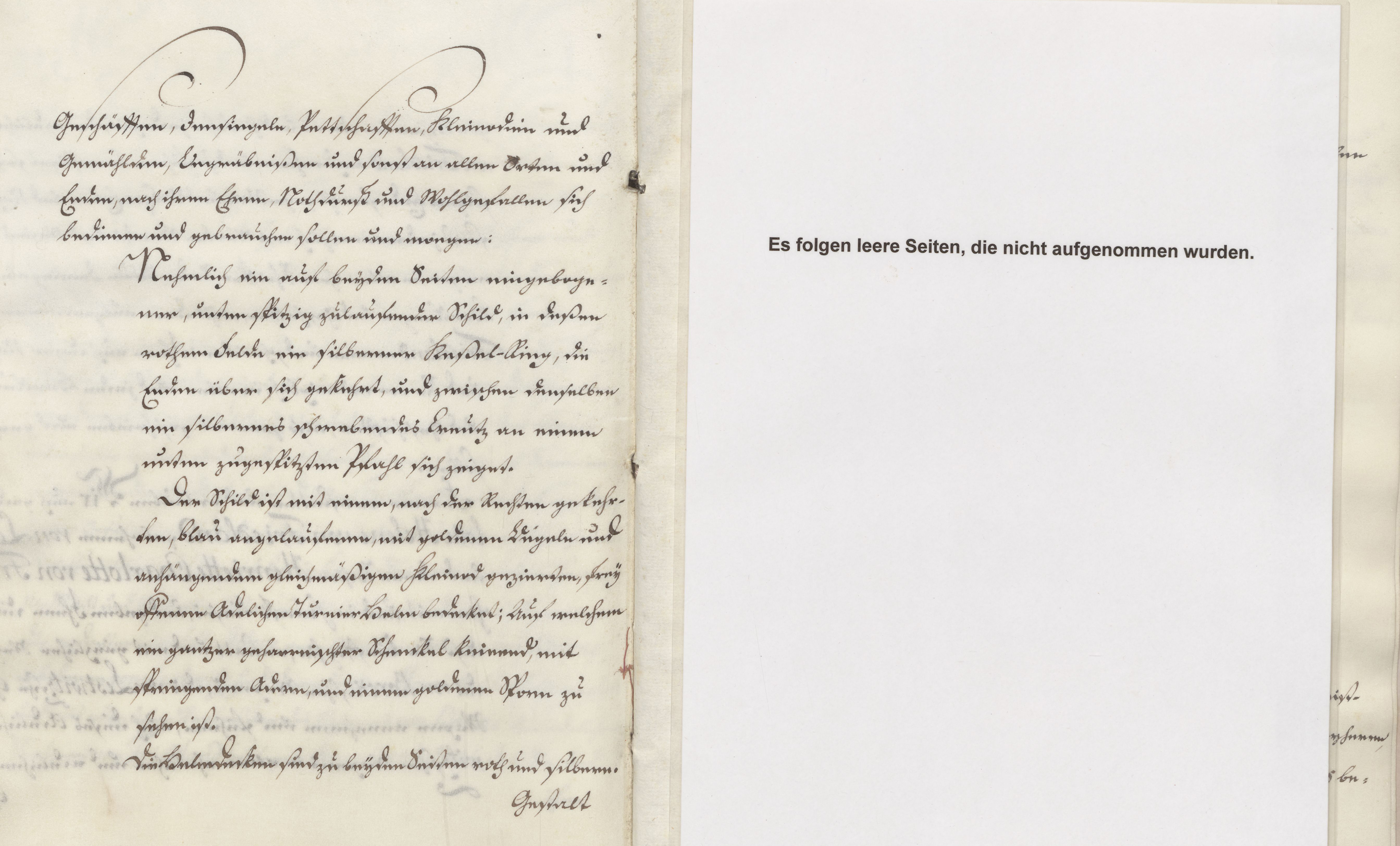 Wir gebiethen und befehlen hierauf allen und jeden unsern Geist- und Weltlichen Untersaaßen, Fürsten, Praelaten, Grafen und Freyherren, Ritter, und adelmäßigen Leuten und Vasallen, wie auch allen von Uns be- [siebente Seite] stellten Obrigkeiten und Amt tragenden Personen, und sonst allen und jeden unsern getreuen unterthanen, in unserm Erbkönigreich, Chürfürstenthum, souverainen und übrigen Hertzogthümern, Fürstenthümern, und Landschafften, wes Würden und Standes sie seyn mögen, hiermit in Gnaden, daß sie von nunan und hinführo obgedachte Charlotte Helene von Friedland gebohrne von Lestwitz und derselben Tochter Henriette Charlotte von Friedland, bey diesen Ihnen verliehenen Adelichen Nahmen und Wapen, wie obstehet, von Unsertwegen schützen und handhaben, darinn nicht hindern noch irren, hierwider nichts thun, noch jemand anders in einerley Weise noch Wege verstatten zu thun; als lieb einem jeden ist, Unsere Ungnade und dazu eine Poen von zweytausend Gulden [?] zu vermeyden, welche ein jeder so offt er freventlich dawider thäte, halb in Unsere RenthCam[m]er und die andere Hälffte vorgedachter Charlotte Helene von Friedland gebohrene von Lestwitz und derselben Tochter Henriette Charlotte von Friedland, so hierwider beleidiget würden, [achte Seite] unnachläßig zu bezahlen verfallen seyn soll. Des zu Urkund haben Wir dieses Diploma Höchsteigenhändig unterschrieben, und Unser Königlich größeres Innsiegel daran hängen laßen. So geschehen und gegeben in unserer Königlichen Residentz Stadt Berlin, den 3ten Tag Monaths Martii nach Christi unsers Herrn Geburth im Eintausend Siebenhundert Acht und Achtzigsten und Unserer Königlichen Regierung im zweyten Jahre.