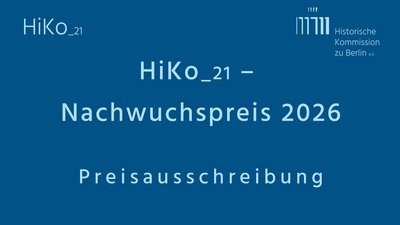 | HiKo21Zum achten Mal schreibt die Historische Kommission zu Berlin e.V. den Preis zur Förderung von Nachwuchsforschungen auf dem Gebiet der Landesgeschichte von Berlin, Brandenburg und Preußen aus. Förderfähig sind laufende wissenschaftliche Projekte noch nicht promovierter Nachwuchsforscher*innen (Dissertationsvorhaben, Archivaufenthalte, Tagungen & Workshops, Ausstellungen, Editionen, wissenschaftliche Vorhaben aus dem Bereich der Digital Humanities, Anträge zur Forschungsförderung oder die Finanzierung einer Kinderbetreuung während der Forschungsarbeit). Bewerbungsfrist ist der 15. Mai 2025.