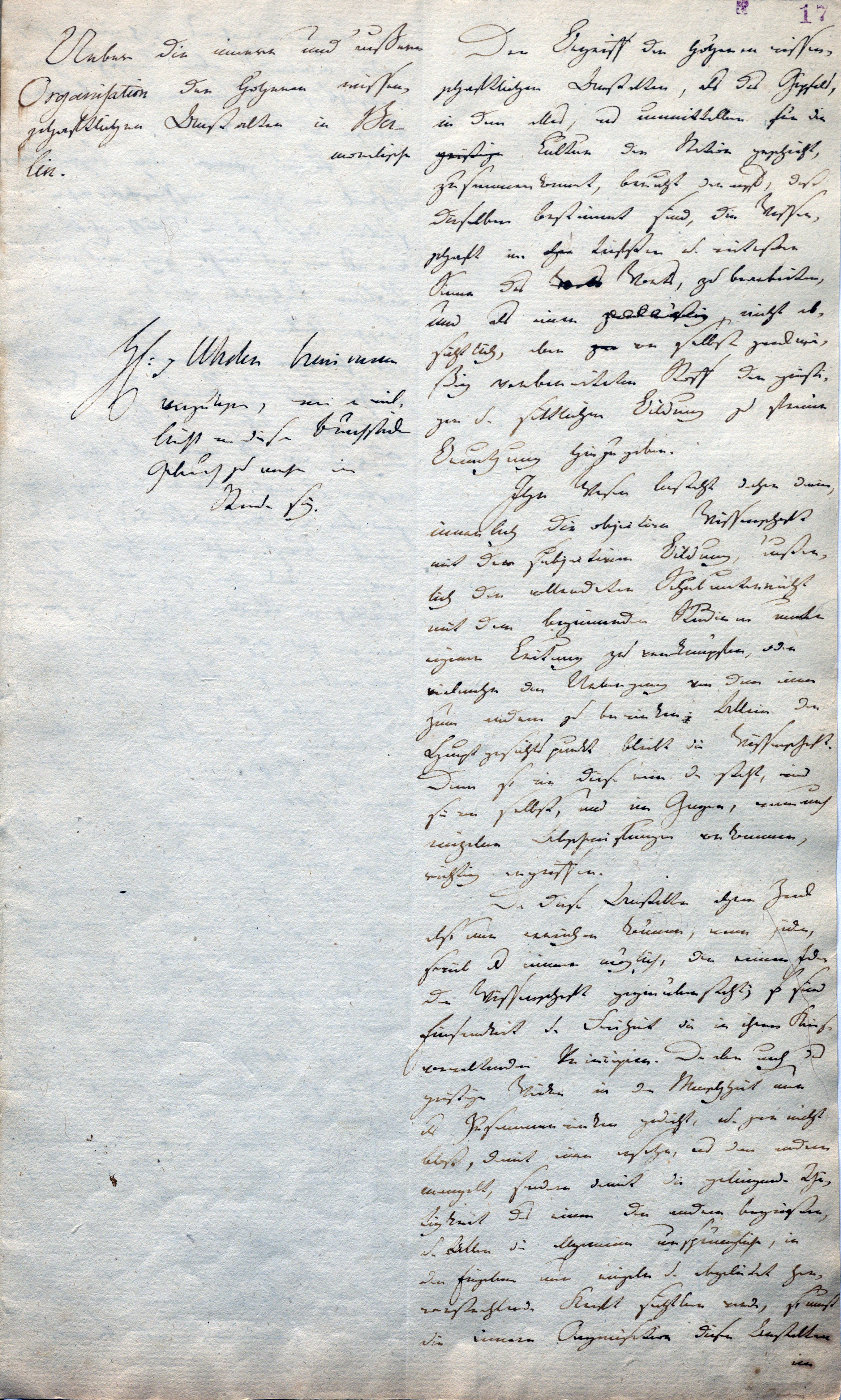 Archiv der Berlin-Brandenburgischen Akademie der Wissenschaften (ABBAW), PAW (1700–1811), I-I-25a, Bl. 17r–24r: Wilhelm von Humboldt, ‚Ueber die innere und äußere Organisation der höheren wissenschaftlichen Anstalten in Berlin‘ [ohne Datum], wahrscheinlich 1809.