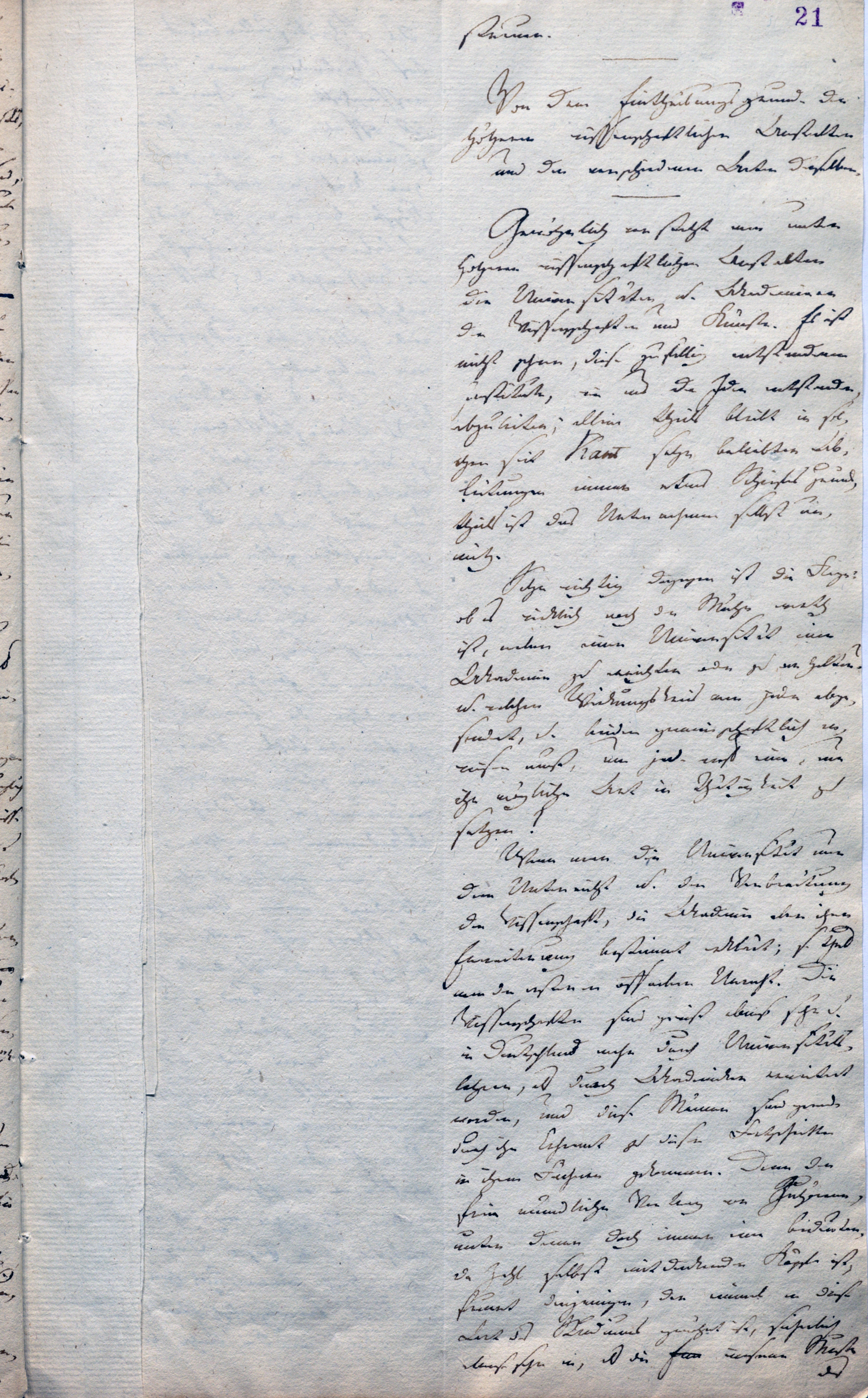 Struktur und Duktus der Argumentation erweisen den Text vor aller weiteren Interpretation und Kontextualisierung zuerst als einen klassischen Humboldt-Text, faszinierend, ja suggestiv und überzeugend in der Argumentation, eingebettet in eine Systematik bildungstheoretischer und politischer Argumentation, die Humboldts Schriften seit den frühen Texten bestimmen, aber im Aufbau und in der Durchführung doch eher ein ‚Bruchstück‘, in dem große Inspiration und offene Fragen der Umsetzung der Ideen unvermittelt nebeneinander stehen – wie in seinem klassischen Text über die ‚Bildung‘.[8] Die Überlegungen ‚Ueber die innere und äußere Organisation der höheren wissenschaftlichen Anstalten in Berlin‘[9] brechen zum Beispiel exakt in dem Moment ab, als ein wesentliches Thema aus der Umwelt der Universität noch systematisch angekündigt wird, nämlich ein Kapitel ‚von der Akademie‘, dem nach der Überschrift aber kein Text mehr folgt. Bis dahin hatte Humboldt sein Bild der Universität zuerst nach ‚innen‘ vom Begriff der Wissenschaft aus entfaltet, und dann ihre Position nach ‚außen‘ im Verhältnis der Universität zum Staat, innerhalb des gesamten Bildungssystems und für die ‚höheren wissenschaftlichen Anstalten‘ in den prinzipientheoretischen Grundlagen entfaltet.