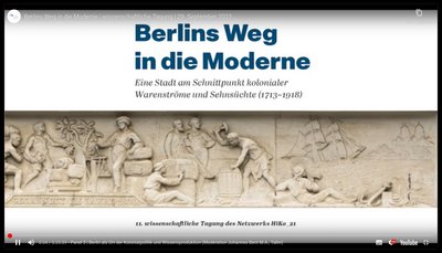 | YouTubeBerlin als Laboratorium der Moderne: Das gilt nicht nur für das Berlin der Weimarer Republik, sondern ebenso für das der Kaiserzeit. Neue Industrien und Vergnügungen, rasantes Wachstum der Stadt, provokante kulturelle Avantgarden, Infragestellung von Geschlechterrollen – all dies stand in scharfem Kontrast zum Konservatismus der wilhelminischen Eliten. Inwieweit der Einzug der Moderne in Berlin durch die koloniale Expansion des Kaiserreichs forciert wurde, ist bislang kaum untersucht worden. Dies gilt umso mehr für frühere materielle und immaterielle Verflechtungen der Stadt mit kolonialisierten Räumen. Seit dem 18. Jahrhundert gelangten von den Seehäfen über die märkischen Kanäle immer mehr…