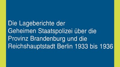 Die Lageberichte der Gestapo und die Berichte des Polizeipräsidenten über die Reichshauptstadt Berlin 1933 bis 1936